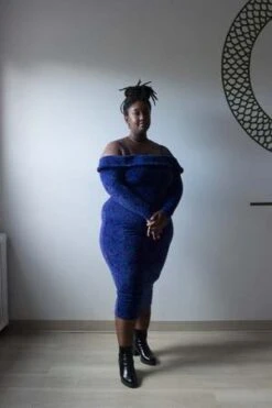 Hilary MacMillan’s Cuff Sweater Dress effortlessly mixes the comfort of loungewear with the chic structured look of your favourite party dress. Made from a beautiful Italian fabric, this dress features a sleek and sexy off the shoulder cut and midi length skirt giving it a playful and elegant feel.