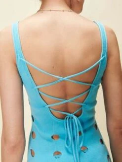 This 100% Cotton Knit Dress is fully cut-out and perfectly layered over swim or undergarments. With an adjustable lace-back detail and scoop neck, meet your go-to summer one piece.