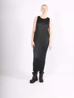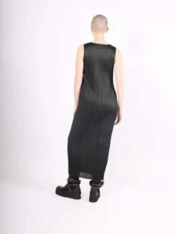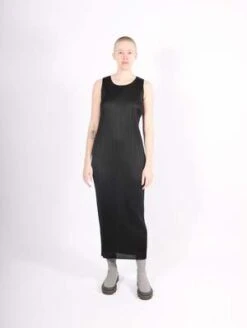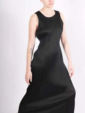 The Basics Dress in Black by Pleats Please Issey Miyake is a timeless and versatile piece for any occasion. It features a sleeveless dress design with a column silhouette for a sophisticated and complimentary look. Ideal for dressing up or down and perfect for travel, this piece will become a classic staple in your wardrobe.
