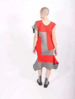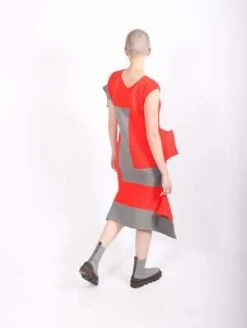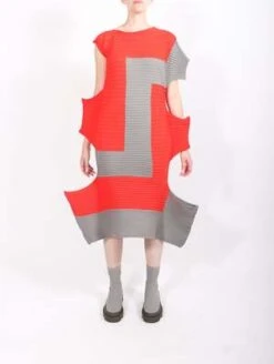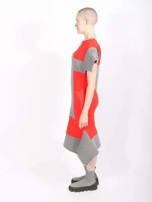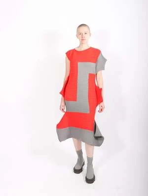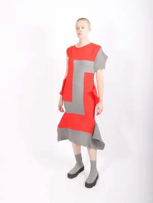 This elegant Rectilinear dress from Issey Miyake is a lightweight and seamless knit, combining two-tone rectangular shapes for a visually striking silhouette. The straight fit is perfect for special occasions and the one half sleeve adds a subtle edge. Seen on the runway, it is perfect for making a statement.