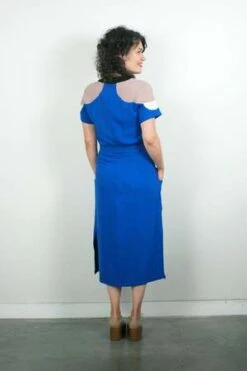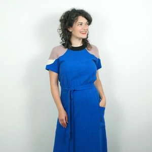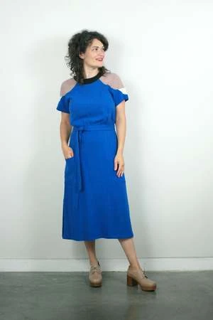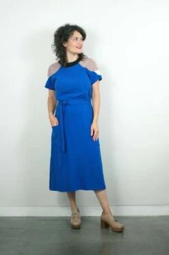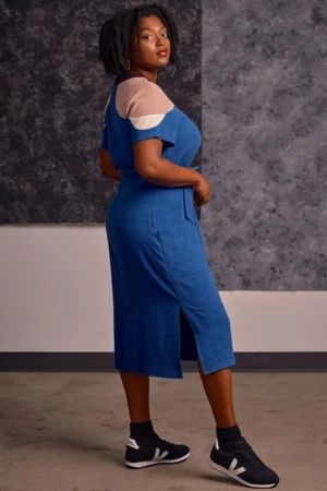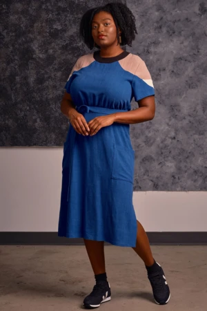 The Meri Dress is cool, self-assured elegance. It’s got geometric piecework at the shoulders, a removable belt for a little waist definition, and a smooth flowy feel. Also, pockets! Wear this dress with ankle boots and dainty earrings for job interviews and dinner parties, or style it with sneakers and a denim jacket for city walking tours.