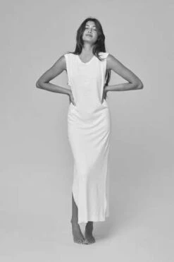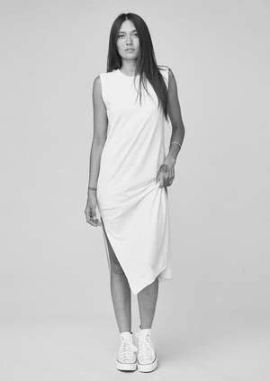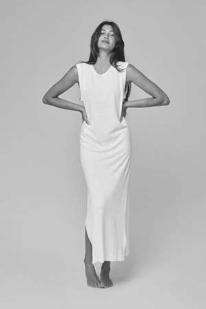 A low-key tank dress in a classic muscle tee silhouette with symmetrical side slits for easy movement. The relaxed shape is both flattering and laid back, making it easy to dress up with boots and a jacket or pair with sneakers for a casual cool look. Cut in a lightweight hemp and organic cotton blend. Garment washed for a lived in feel. Designed and produced in California.