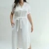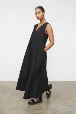 An effortless lightweight dress, made from 100% certified Fairtrade lightweight organic cotton voile. The Belle Dress has a standard fit through the bust, and an A-line silhouette through the body. It features a V neckline through the front and back, and can be worn cinched in or loose. Inseam pockets add to the ease of wear. Layer with a tee or wear on its own.