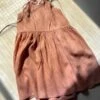 Midi length dress with a square neckline and wide cut short sleeves. Dropped gathered waist for a relaxed fit. With two front patch pockets and side seam pockets.