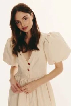 Are ready for a modern love story, just look at CHARLIE dress, isn’t it a love at first sight? Mid-length, flared from waist dress is a this season’s must have. It has puffy sleeves and is buttoned with two heart-shaped buttons at the front.