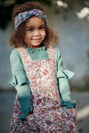 With its apron dress style, the Mira piece is definitely a retro item, infused with a nostalgia for another age. Print, like a bouquet of dried flowers in autumnal colors, adds a little extra soul of the most bohemian type.