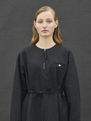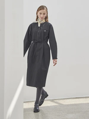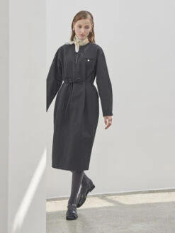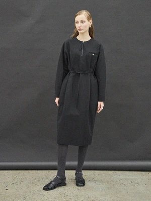 – Long sleeved milky-cotton fabric dress with an avant-garde silhouette.