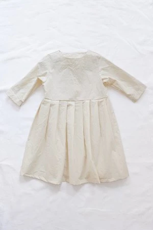 New from Maki. A beautifully minimal and elegant dress in a crinkled ivory cotton.