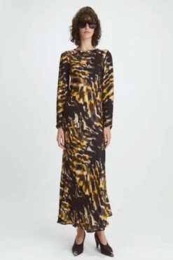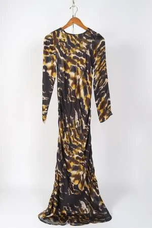 Long-sleeve Madariaga Catia maxi dress is decorated with a tie dye style print.