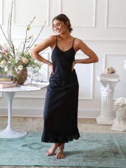 Beautiful slip dress with ruffle hemline. Soft organic cotton.