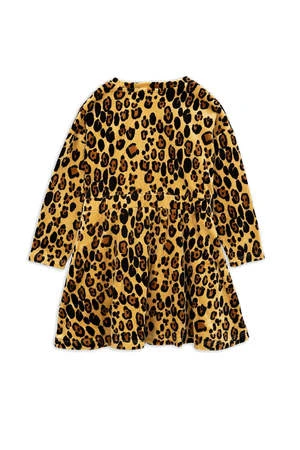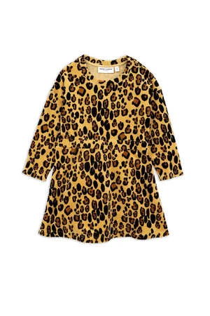 This velour crewneck dress is the perfect happy-medium between casual and dressy. Soft velour and an elasticated waist provide a laid back look and feel, while the vibrant leopard print and flared skirt add subtle sweetness.