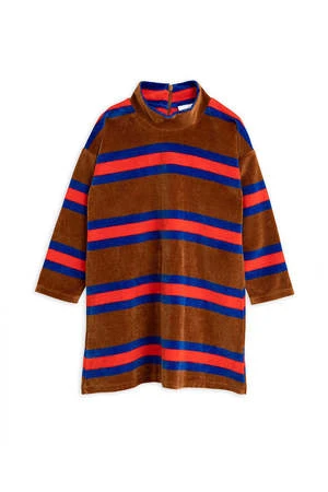 Mini RodiniKids Mini Rodini Velour Stripe Long Sleeve Dress – Brown