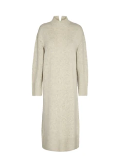 midi knit dress made of lambswool and nylon. Nylon ensures a soft quality. The dress has a loose fit, dropped shoulders and wide ribbed edges. The dress has a slit on the side.