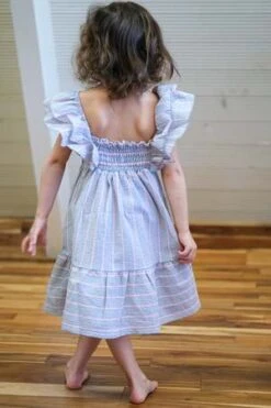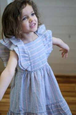Dress in a pale blue seersucker stripes