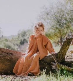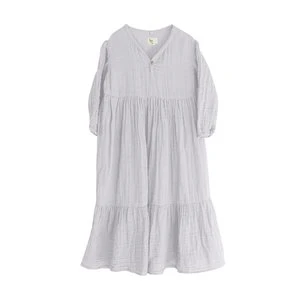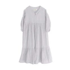 New from Nico Nico for Autumn/Winter 2021. Effortless prairie style maxi dress in a pale cloud grey crinkled gauze.