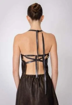 Back Detail: Elastic band with adjustable string ties to fit different sizes