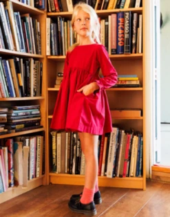 Made with 100% GOTS certified Organic Poplin and dyed with organic dyes, the kid’s Vale Dress in Blue Bell is our first long-sleeve dress made with your twirl-obsessed babe in mind. It features pockets, and the sweetest bluebell ric-rac detailing on the neckline and cuff. Your babe can rock this dress with boots as we transition to fall and layer with tights for cooler temps.