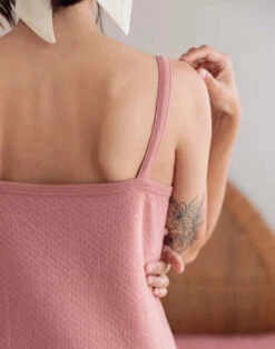 The pointelle sleep dress was designed based on a vintage french slip dress that we re-invented with the softest organic Pima cotton with diamond floral pointelle detail. Featuring spaghetti straps and a cinched pleat in the middle. The fabric is double-lined so it isn’t too revealing while the A-line flare provides the perfect silhouette for every figure. Plan to live in this dress all summer long, from slow Sundays at home to chic porch hangs.