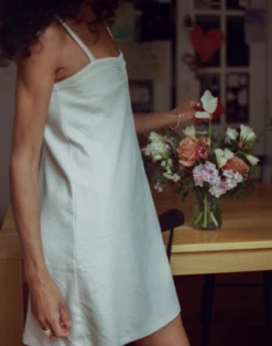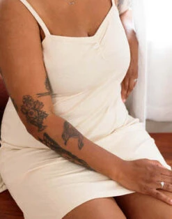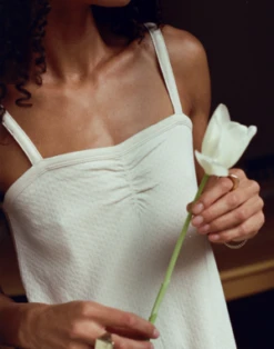 The pointelle sleep dress was designed based on a vintage french slip dress that we re-invented with the softest organic Pima cotton with diamond floral pointelle detail. Featuring spaghetti straps and a cinched pleat in the middle. The fabric is double-lined so it isn’t too revealing while the A-line flare provides the perfect silhouette for every figure. Plan to live in this dress all summer long, from slow Sundays at home to chic porch hangs.