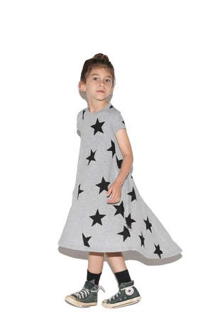 The ideal flowy summer dress for your stylish little one. NUNUNU’s signature star print adds some rocker edge to the typically dainty maxi style. The flowing skirt which provides easy 360 movement and ultra soft cotton makes this a piece she’ll never want to take off.