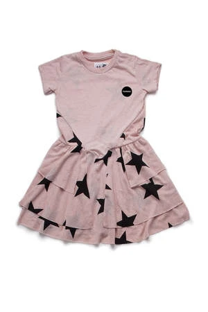 Your little girl will steal the show in this rocker chic dress. Featuring NUNUNU’s iconic star print on a layered tiered skirt with a solid t-shirt bodice, this little number is fun and frilly while being casual and effortless all in one adorable look.