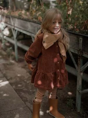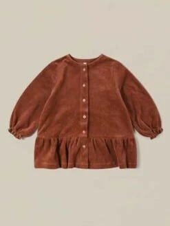 Organic Zoo Cinnamon Picnic Dress. This dreamy mid-sleeved one-piece is made of the softest cord cotton. With sweet wooden buttons in the front and pretty ruffle trim your little girl will be ready for playdates, walks in the park and everything in between.