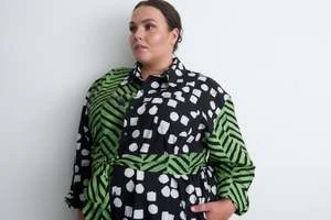 Eyiwaa is 5’9″ and wears a size 2 (pictured sitting on green stool)