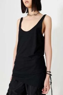 Our Legacy Tank Dress in Sulphur Black Dry Crepe. Produced in a Portuguese cotton crepe fabric, the womens Tank Dress has a straight fit and features a v-neck collar and a low scooped back.