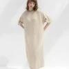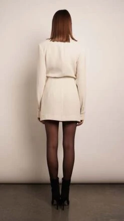 Introducing the Stephanie Polo Dress: crafted from wool-crepe in a timeless neutral hue, featuring a buttoned collar, padded shoulders and a flattering darted waistline. A perfect choice to help you achieve a polished, sophisticated silhouette.