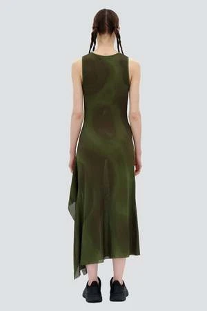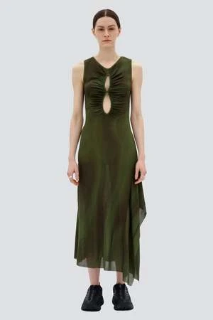 Green Grove Rosie Ruched Tank Dress from PH5. Ocean print inspired by jellyfish. Flattering ruched opening at front body. This dress is semi sheer.