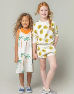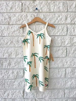 Pink Chicken Girls Organic Kelby Dress – Cream Palm Tree