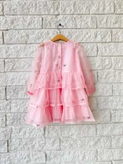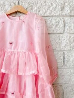 The Pink Chicken Girls Organza Fleur Dress is a charming long sleeve dress. Boasting a layered skirt and sheer sleeves. It’s a perfect look for the holiday season.