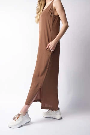 Classic silk slip dress, with v-neckline