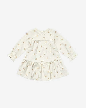 New velvety soft baby dress with tiers and long sleeves, has a coconut button back closure for easy changing as well also. All baby sizes includes our gathered bloomers!