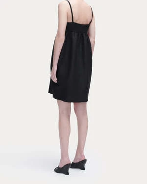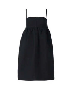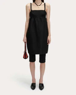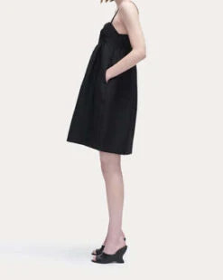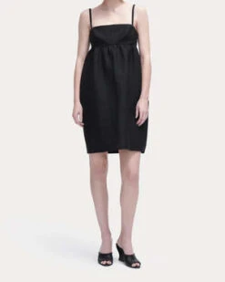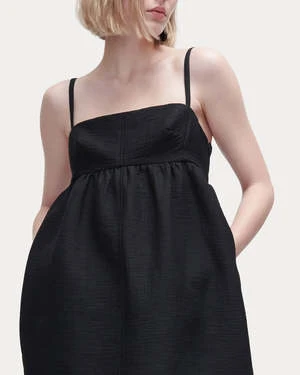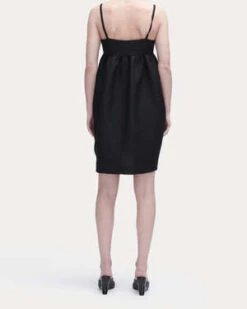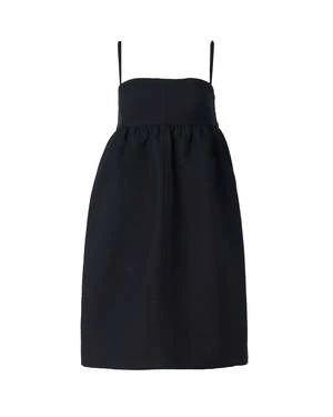 The Maninette Dress in Black by Rachel Comey is a mini dress crafted in a cocoon silhouette with an empire waist and thin straps crafted in an Italian Foam Jacquard.
