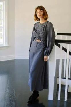 The Zosia dress features a fitted bodice, a drawstring to gather the front and a cheeky cutout! It shows just the right amount of skin and can be adjusted to have a bigger or smaller peek-a-boo. This dress zips up the back for a perfect slim fit. Great with boots or heels!