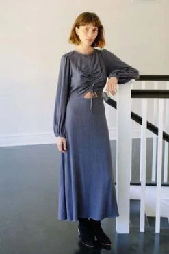 The Zosia dress features a fitted bodice, a drawstring to gather the front and a cheeky cutout! It shows just the right amount of skin and can be adjusted to have a bigger or smaller peek-a-boo. This dress zips up the back for a perfect slim fit. Great with boots or heels!
