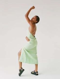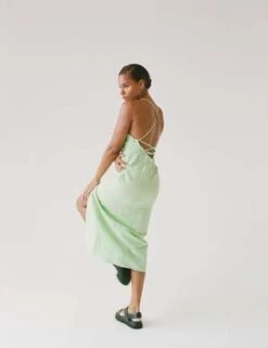 The Dila dress has a tie back detail and front slit. Play around with the tie for the perfect fit.
