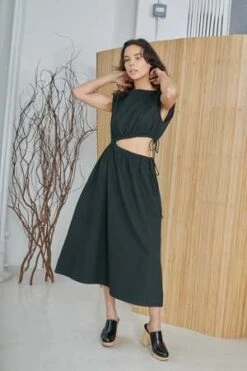Show a little somethin’ somethin’. Introducing our new effortless style that will take you from season to season, and occasion to occasion. Featuring a drawstring detailing at the cutout waist; showing just enough of your skin! Classic a-line silhouette made out of our new organic cotton.