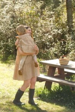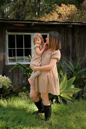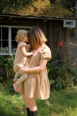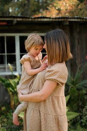 The Elle Dress is fully tiered dress with a square neck and puff sleeves with elastic openings.