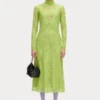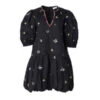 Tailored mini dress in a mid weight suiting fabric.Features a deep u neckline with a rosette and bow aplique at front. Scooped neckline with concealed zipper at back. Fully lined.