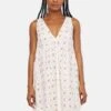 The Veda velvet applique dress features puff sleeves and tie-dye appliques throughout.