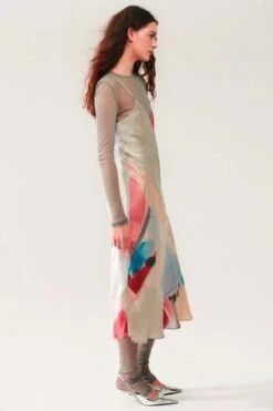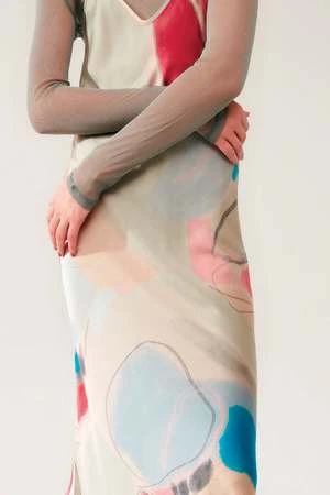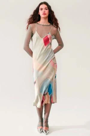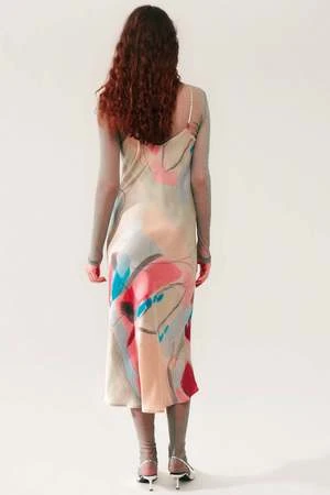 Silk Laundry 90s Slip Dress in Expressionist is comfortable and playful, this everyday silk slip essential combines versatility and ease-of-wear. Crafted from sandwashed silk, adjustable straps and is cut on the bias for a stylish silhouette. Featuring a v-neckline and adjustable spaghetti straps. Pair with a chunky or cropped sweater and knee high boots for the chiller days or pair with a denim jacket and sandals for a warm day.