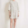 Fitted rib knit dress from Simon Miller, with a crew neckline, midi length, and flared long sleeves in a custom space dye stripe. Comfy, flattering, and super wearable, the Axon Dress is perfect for chilly fall days.