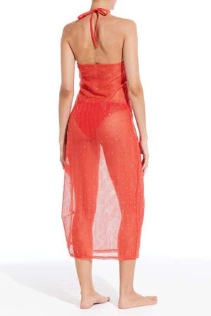 A great sheer, sparkly number for the beach and beyond. Adjustable halter tie and funky ring detail in the front.
