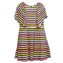 – All over multicoloured stripe print with gold dash details