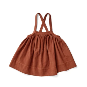 Signature pinafore dress with a loose fit at waist and full gathers.