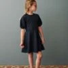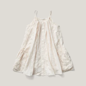Strappy dress with oversized, elastic pockets and shell button lined placket at front.