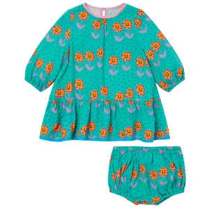 – Dress with all over happy flower and dots print