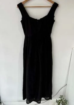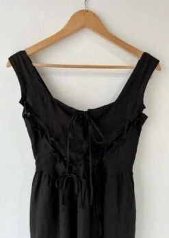 The Gyneth Linen dress by Tach is a romantic corset style featuring lacing at chest and sides, a square neckline, concealed side pockets, and an invisible zipper closer at the back.